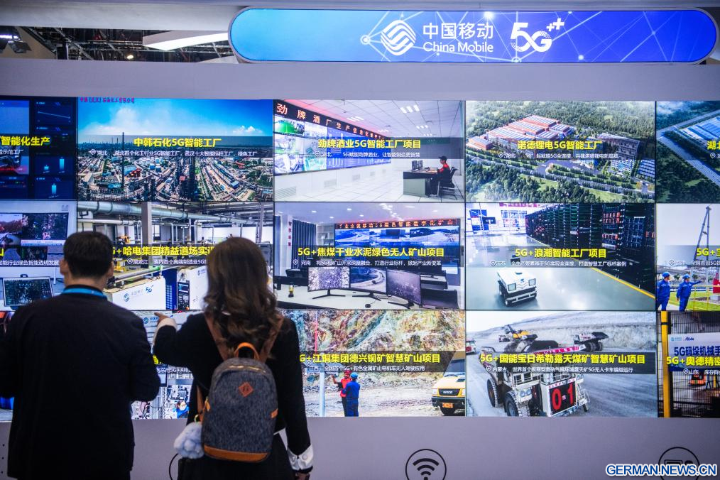 Besucher besichtigen die Ausstellung über Innovationserfolge von „5G + Industrial Internet". (Foto vom 20. November 2023, Xinhua/Wu Zhizun)